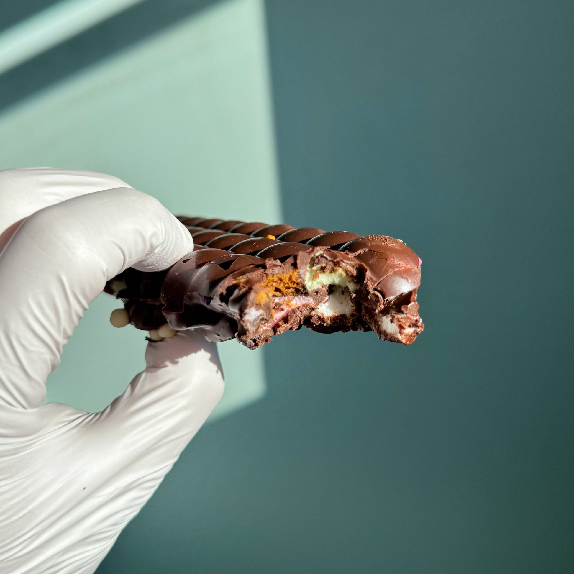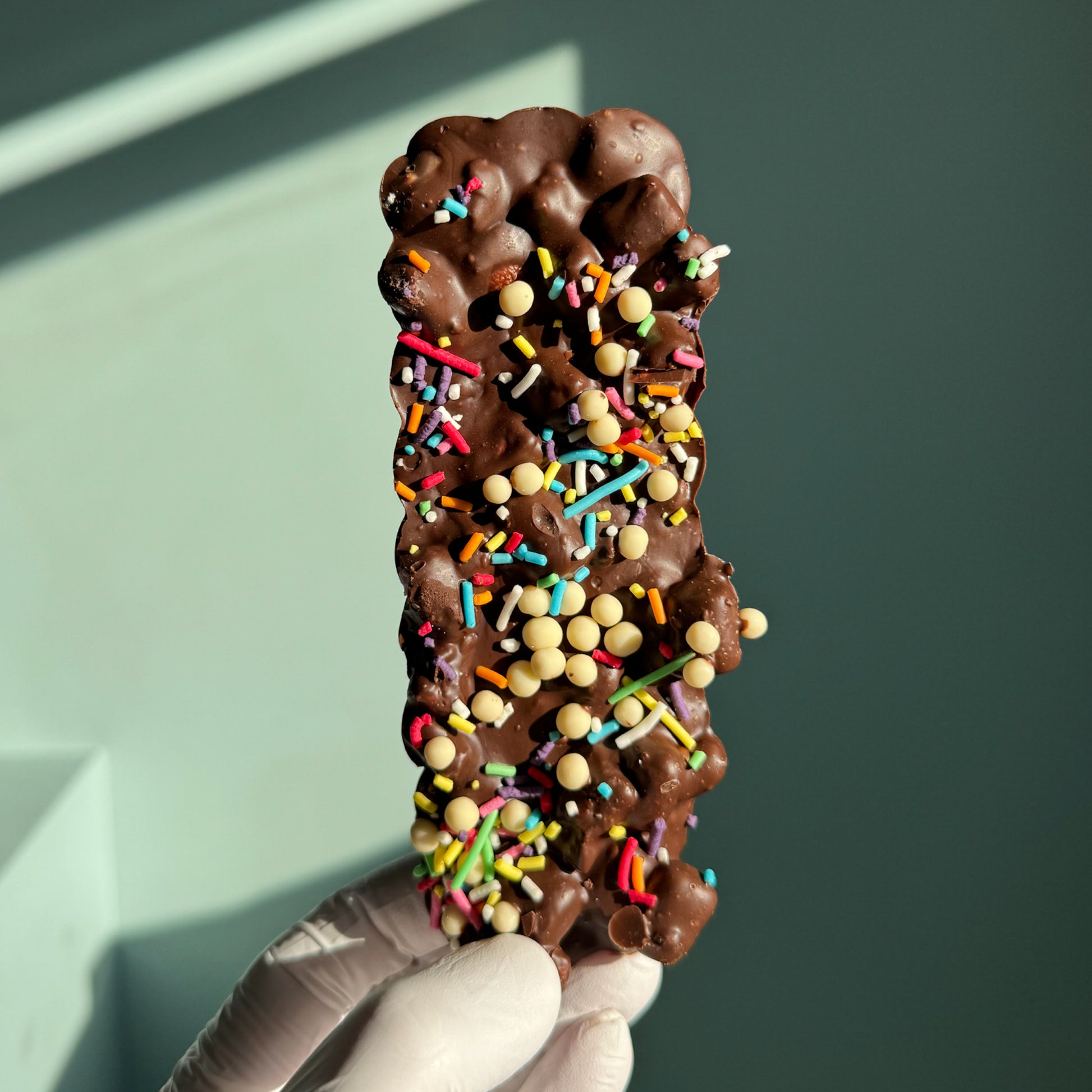 Our Rocky Road Bar is loaded with soft marshmallow, crunchy biscuit pieces, popping candy, and freeze-dried berries, all wrapped in rich chocolate for the ultimate texture-packed bite.